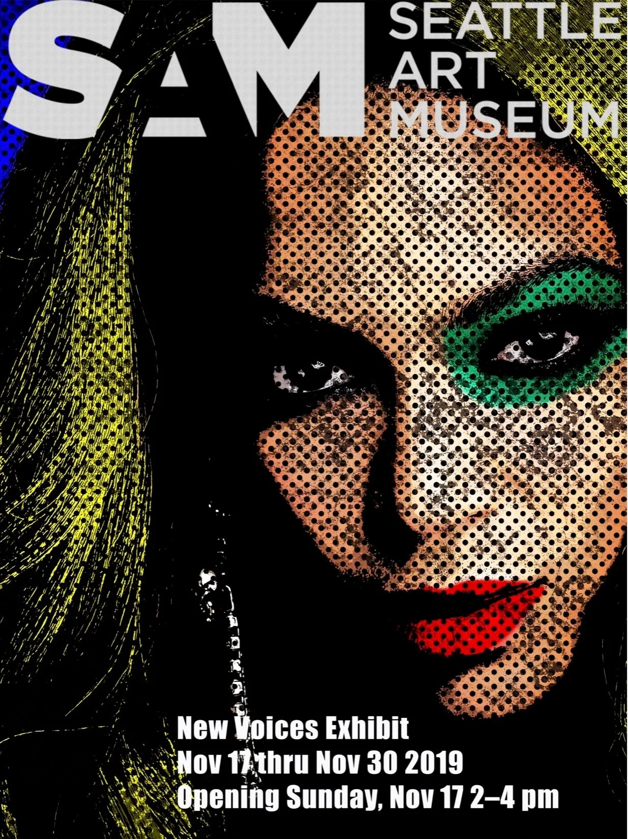 Beyoncé is one of my three ultimate artistic inspirations, and this piece reimagines her icon status through a Pop Art lens. Inspired by Lichtenstein’s bold halftones and Warhol’s celebrity worship, I created this fictional museum poster for the Seattle Art Museum’s New Voices exhibit.